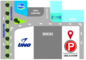 Ofibodegas Rapaco, Contiguo a gasolinera Uno, retornos Bulevar Kennedy Anillo Periférico hacia Suyapa, tercera etapa, bodega numero 24. Honduras.